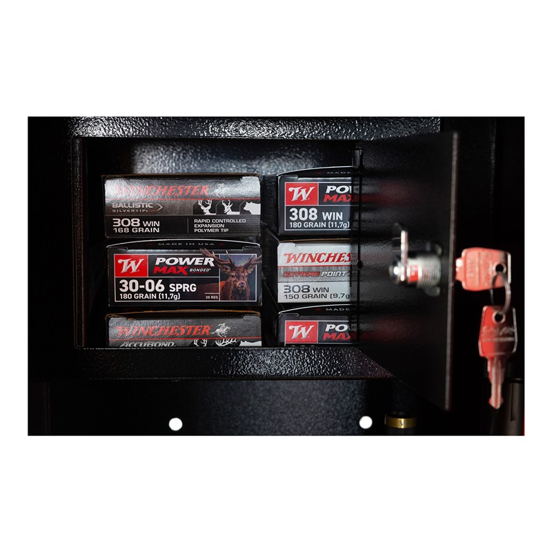 Ce coffre-fort est équipé d'un compartiment à munitions pour ranger vos munitions ou autres objets de valeur en toute sécurité.