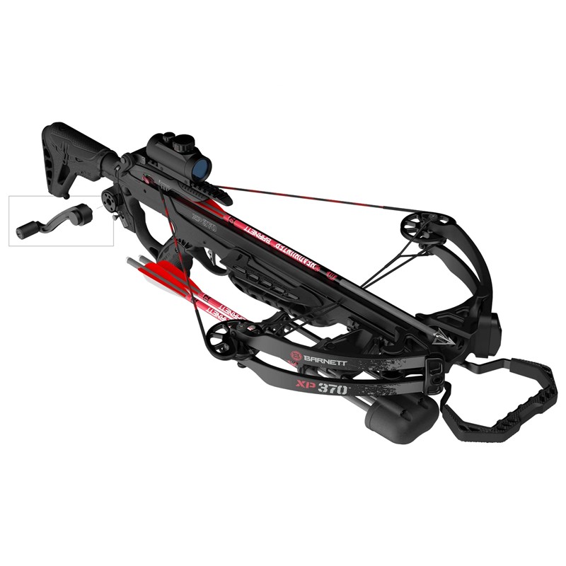 Avec ses 90 à 96,5 cm de long et une largeur armée de 33 cm, l’arbalète est compatible avec un système d’armement par manivelle (non inclus) et dispose d’un mécanisme Rope-Hold breveté pour faciliter l’armement à la corde.