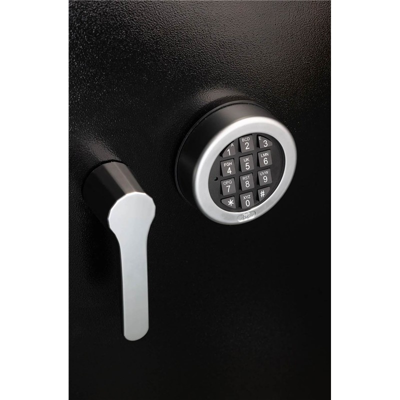 Ce coffre-fort est sécurisé par un système de verrouillage électronique VdS Elec avec clé de secours.