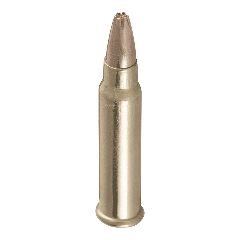 L'expansion rapide e explosive de la balle Jacketed Hollow Point (pointe creuse chemisée) en fait la munition idéales pour la chasse aux nuisibles.