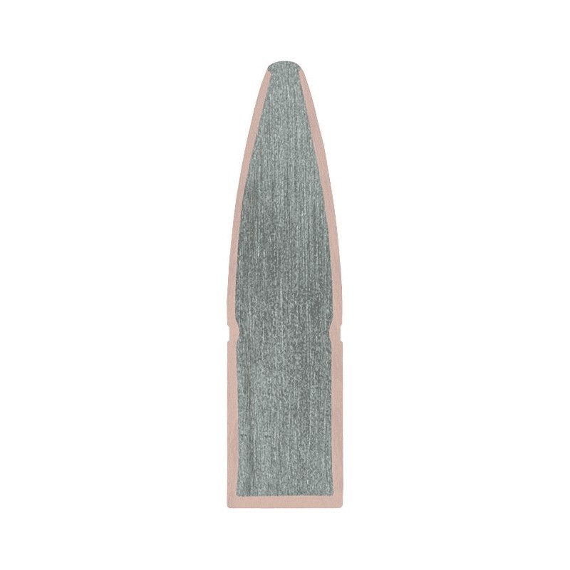 • Chemise en cuivre profilée verrouillée à un noyau en plomb : Expansion x2, transfert d'énergie et pénétration efficace.
