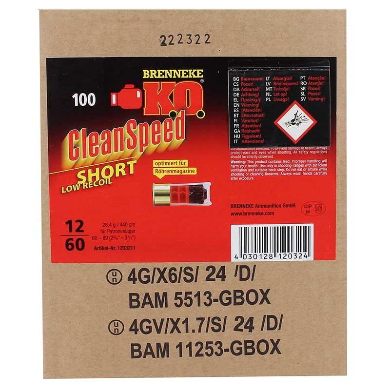 Balle De Fusil Brenneke Cleanspeed Short - 28.4G - Calibre 12