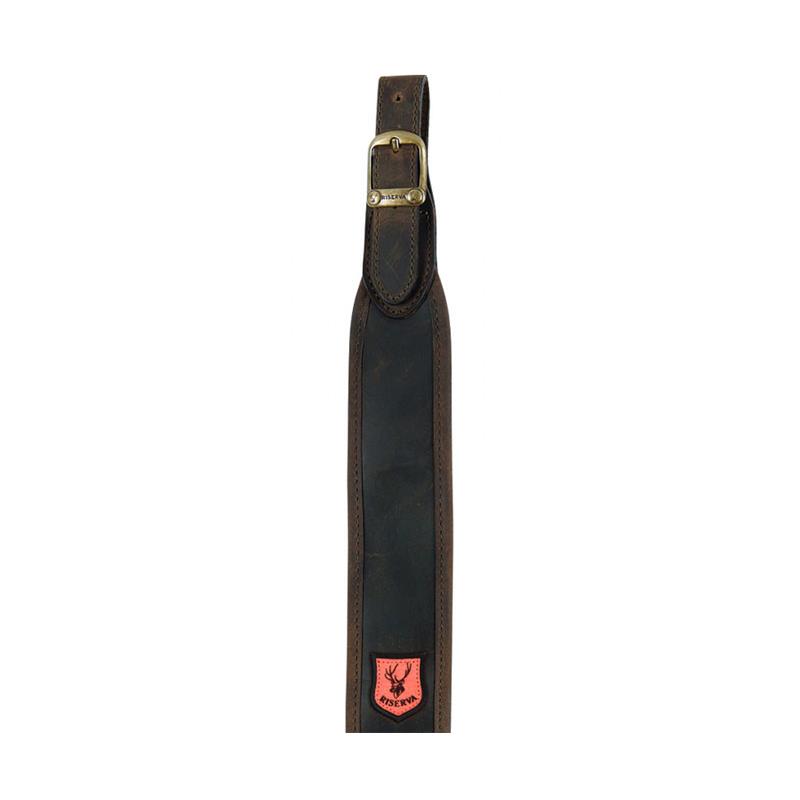 Bretelle réglable pour carabine, partie postérieure en néoprene antidérapante pour avoir une parfaite adhérence à l'épaule, attaches réglables en cuir et boucles en métal cuivré.