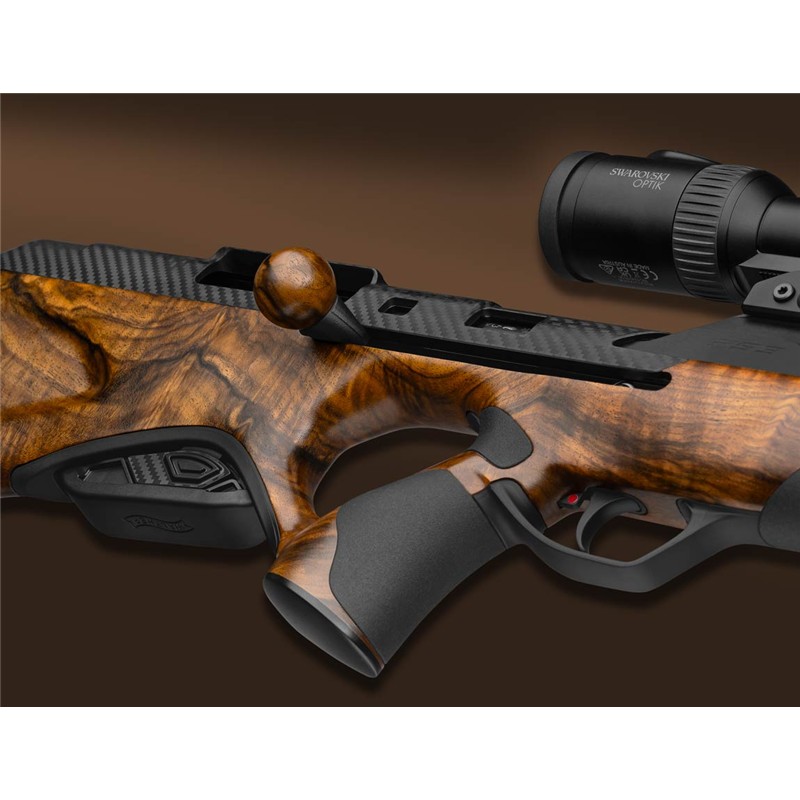 Cette carabine à réarmement linéaire incarne une vision moderne de l'arme de chasse tout en respectant les codes de l'armerie traditionnelle. Sa crosse en noyer de grade 4 offre une esthétique prestigieuse et une prise en main naturelle, idéale pour les chasseurs exigeants. Conçue pour une polyvalence maximale, elle intègre un armeur séparé sur la poignée, permettant de transporter l'arme chambrée en toute sécurité avant de l'armer instantanément d'un simple mouvement du pouce. Le boîtier de culasse est préparé pour recevoir le système de montage Walther FIXLOCK, assurant une stabilité parfaite de vos optiques de tir. Optimisée pour une utilisation avec réducteur de son, elle est livrée de série avec un silencieux Walther QSA, offrant un confort de tir supérieur lors de vos sorties de chasse à l'approche ou à l'affût.