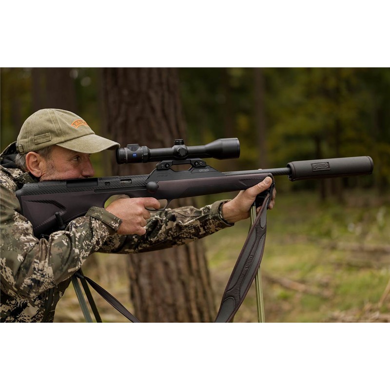 Cette carabine à réarmement linéaire a été spécifiquement conçue pour affronter les conditions de chasse les plus exigeantes. Sa crosse synthétique haute densité, arborant une finition Chestnut élégante et discrète, offre une résistance totale aux intempéries, aux ronces et aux chocs sur le terrain. Le système de réarmement RS3 permet une fluidité d'exécution remarquable pour des doublés rapides, tandis que l'armeur séparé garantit une sécurité maximale : l'arme n'est sous tension qu'au moment précis du tir. Équipée de l'interface Walther FIXLOCK, elle permet un montage d'optique ultra-bas pour un alignement instinctif. La présence du silencieux Walther QSA de série transforme l'expérience de tir en réduisant considérablement le recul et la signature sonore, faisant de cet ensemble une solution prête à l'emploi pour l'approche ou la battue.