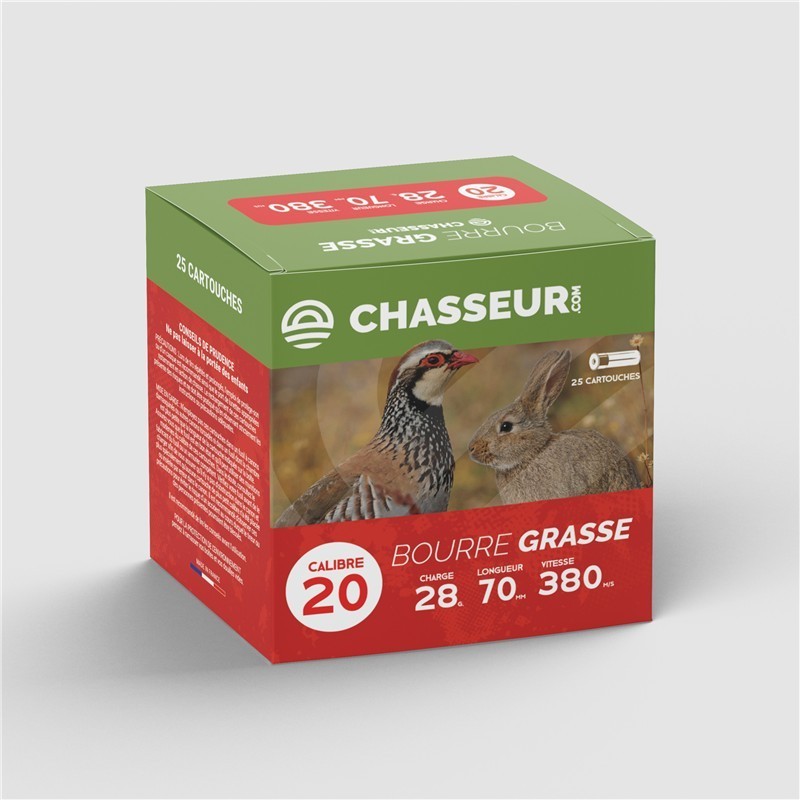 Cartouche De Chasse Chasseur.Com Bourre Grasse - 28G - Calibre 20