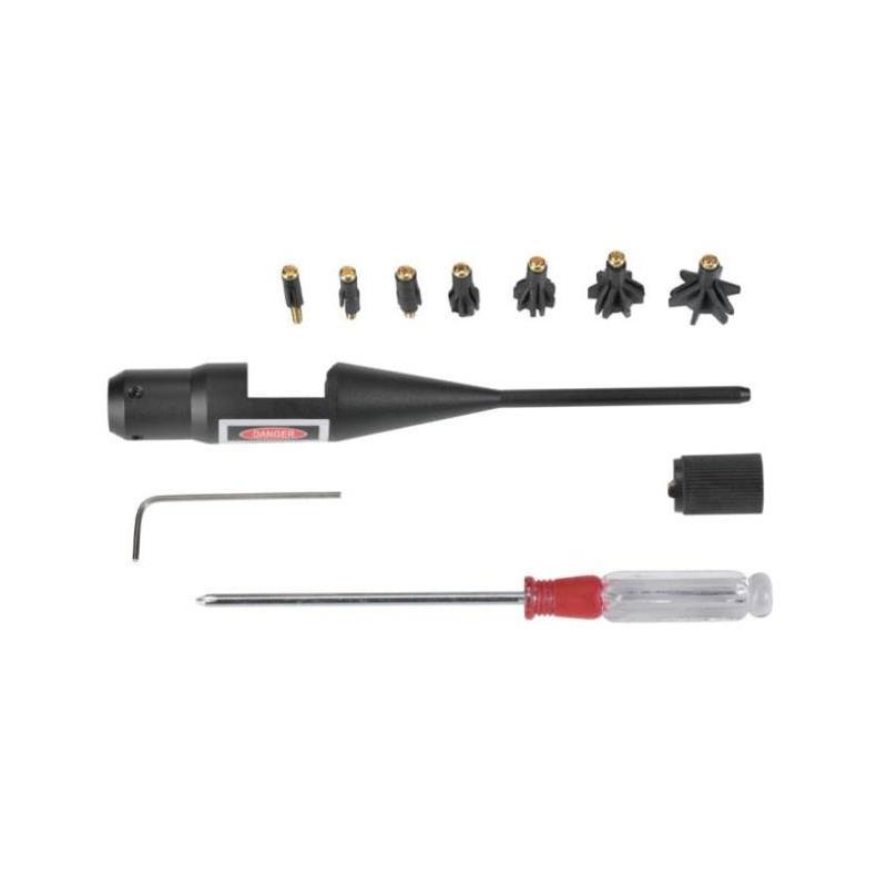 Collimateur universel de réglage laser permettant de contrôler instantanément et de façon précise votre lunette de visée. Fourni avec 6 adaptateurs pour toutes les armes à feu de calibres 4,5 jusqu'à 12,7 mm. Le collimateur s'installe dans la bouche du canon de l'arme. Il projette un faisceau lumineux depuis l'axe central du canon. Construction en alliage d'aluminium, laser de classe II, permet de réaliser un pré-réglage de votre arme et de vérifier l'alignement de votre optique à tout moment, n'importe où et sans tirer. Livré avec piles