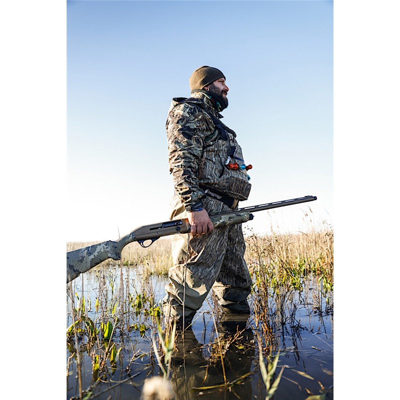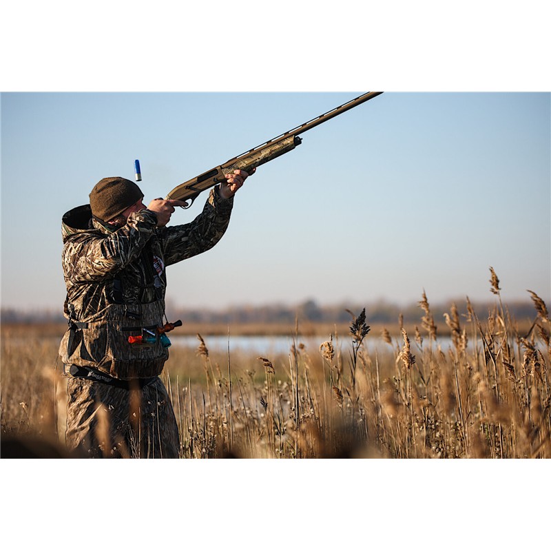 Plus de puissance et efficacité maximale avec le semi-automatique camo Affinity 3,5 Elite Bronze, la chambre supermagnum pour la chasse aux aquatiques. Augmentez le régime moteur et profitez de l’efficacité de l’Affinty 3,5 Elite Bronze, le semi-automatique calibre 12 qui peut être manipulé comme un magnum, mais qui garantit toute la puissance d’un supermagnum. La crosse et la tige en technopolymère dans le camo Optifade Marsh en font le supermagnum idéal pour la chasse aux aquatiques. Les oiseaux aquatiques ont un champ de vision presque panoramique et sont particulièrement sensibles aux couleurs. Ce camouflage de crosse et de canne représente un motif de camouflage vertical, spécialement conçu pour tromper la perception des oiseaux d’en haut.