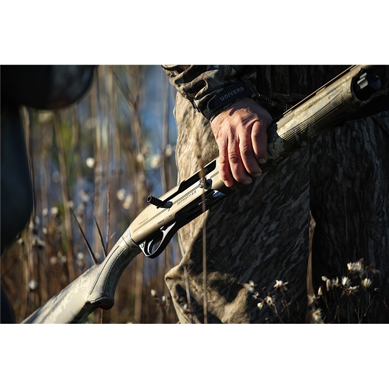 Affinity 3,5 Elite Bronze assure un camouflage total, grâce à des motifs au design micro et macro qui optimisent le contraste entre les tons clairs et foncés et décomposent la forme de ce fusil, en faisant le compagnon parfait pour disparaitre entre les roseaux et les hautes herbes. La finition Cerakote sur le canon et la carcasse offre d’excellents niveaux d’adhérence et augmente la résistance à la corrosion, pour un semi-automatique adapté à la chasse dans les conditions les plus extrêmes, typiques de l’environnement marécageux. Le bouton de commande élévateur, la manette et la fenêtre de chargement majorés, rendent ce fusil de chasse facile à manipuler même pour les chasseurs à main gantée. Équipé d’une bande de visée et d’un viseur à fibre optique bicolore, il est efficace même dans des conditions de mauvaise visibilité.