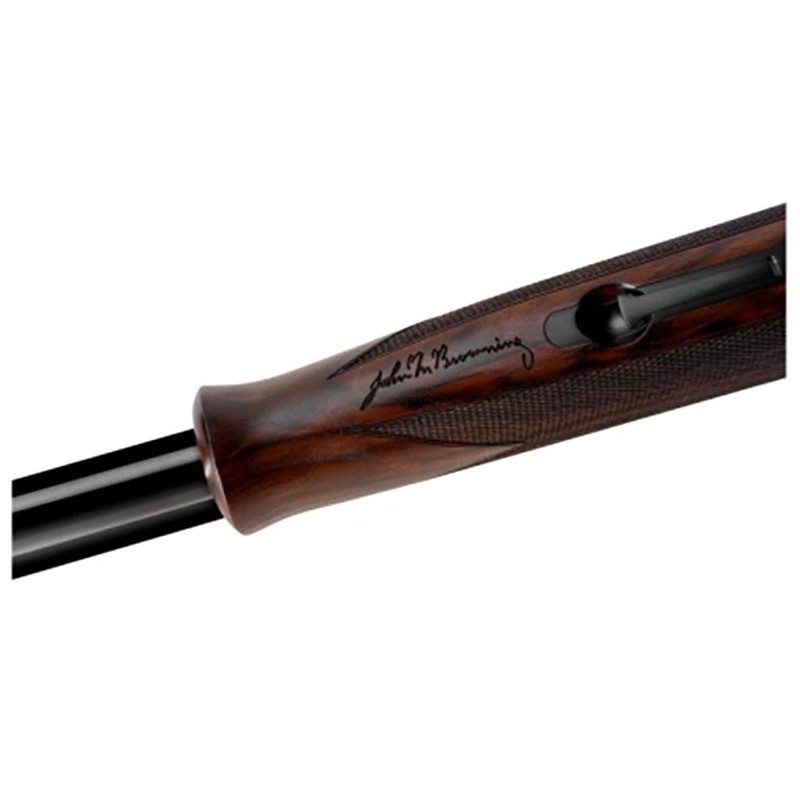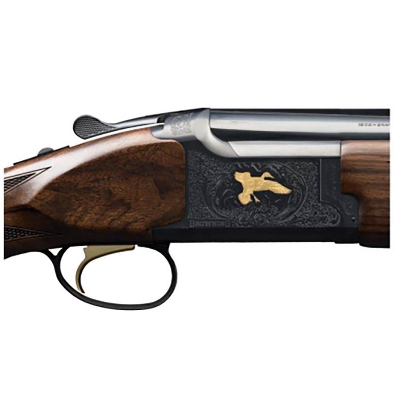 Techniquement, ce fusil est optimisé pour le confort et l'efficacité sur le terrain. Il dispose d'une crosse allégée de type pistolet pour une montée à l'épaule vive et une maniabilité accrue lors des longues journées de chasse devant soi. Le garde-main adopte un profil "Tulipe" classique, assurant une prise en main fine et élégante. Équipé d'une détente fixe dorée parfaitement assortie aux gravures de la bascule, il offre un départ net et franc, caractéristique de la qualité de fabrication Browning.