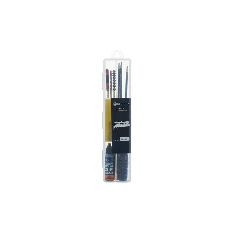 • Kit de nettoyage carabine calibre 6mm. • Kit de nettoyage de base pour carabine. • L’emballage contient :Tige en acier revêtu PVC en 2 pièces assemblables avec poignée ergonomique antidérapante • 1 écouvillon en laine qui reprend le style des iconiques bretelles Beretta • 1 écouvillon en laiton • 1 écouvillon en nylon • 1 écouvillon porte lingette de nettoyage • 6 lingettes de nettoyage • 1 flacon d’« huile à arme authentique CLP » • 100% PP