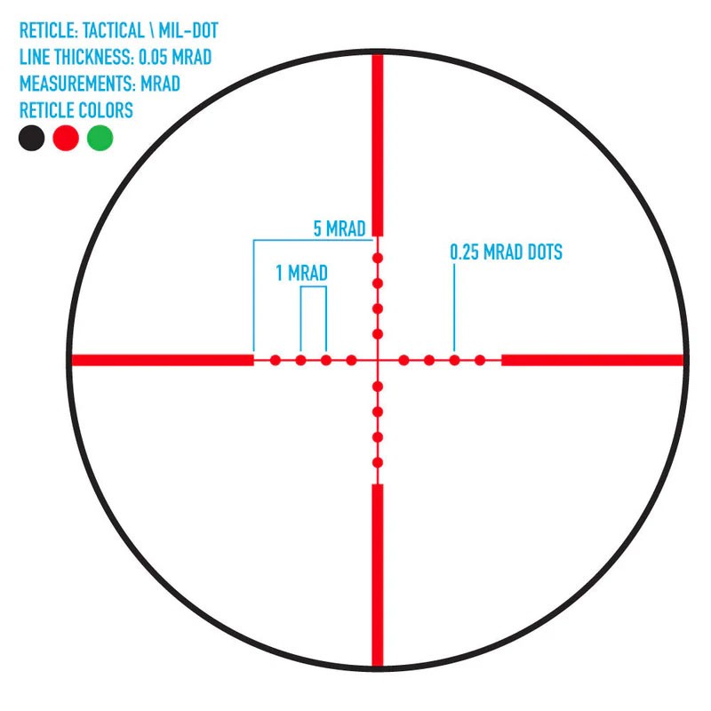 La lunette de visée tactique 8-32x50 AO est idéale pour le tireur polyvalent. Comme tous les modèles de la gamme Firefield® Tactical AO, la lunette de visée tactique 8-32x50 est dotée d'un objectif réglable et d'un verre de pointe, garantissant ainsi la précision la plus élevée du marché pour une variété d'applications tactiques. Cette lunette offre le choix entre un réticule Mil-Dot illuminé rouge ou vert et un réglage MOA par clic de 3 mm, ce qui la rend idéale pour le tir tactique et la télémétrie. Les tireurs peuvent également utiliser le réticule Mil-Dot comme réserve pour la compensation de la chute de balle ou la correction de la dérive. L'autonomie de la batterie avec l'éclairage réglable est comprise entre 80 et 150 heures. L'objectif est réglable en parallaxe, de 15 mètres à l'infini, permettant au tireur d'engager des cibles avec précision, quelle que soit la distance. C'est un atout majeur pour les tireurs de compétition et les tireurs à air comprimé de forte puissance. Cette lunette de visée est résistante à l'eau et à la buée, et fonctionne à des températures comprises entre -20 et 60 degrés Celsius, ce qui en fait un outil polyvalent, quel que soit l'environnement. Ses tourelles de réglage de dérive et d'élévation, faciles à saisir et ouvertes sur le dessus et le côté, permettent au tireur d'ajuster rapidement le réticule pour une plus grande précision. Avec un poids de seulement 900 g, cette lunette de visée légère mais robuste peut supporter jusqu'à 1 200 g de recul.
