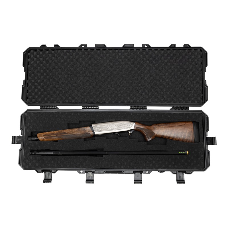 L'intérieur est équipé d'une mousse alvéolée haute densité qui épouse parfaitement les contours de votre arme. Cette mousse assure une double fonction : elle immobilise totalement le matériel pour éviter les frottements internes et joue le rôle d'amortisseur contre les chocs extérieurs, protégeant ainsi vos réglages d'optique les plus fins. La fermeture est assurée par des loquets robustes et ergonomiques, complétés par des points de cadenassage permettant de sécuriser l'accès à votre arme conformément aux réglementations de transport en vigueur.
