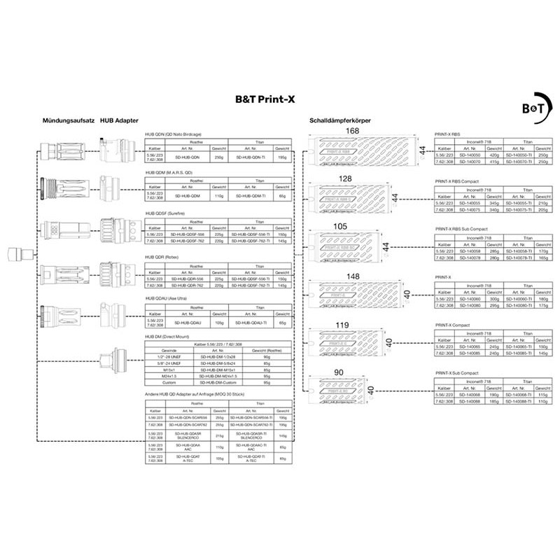 Modérateur De Son B&T Print-X Rbs Universal Mount Nato 556 Compact Inconel 718 Impression 3D