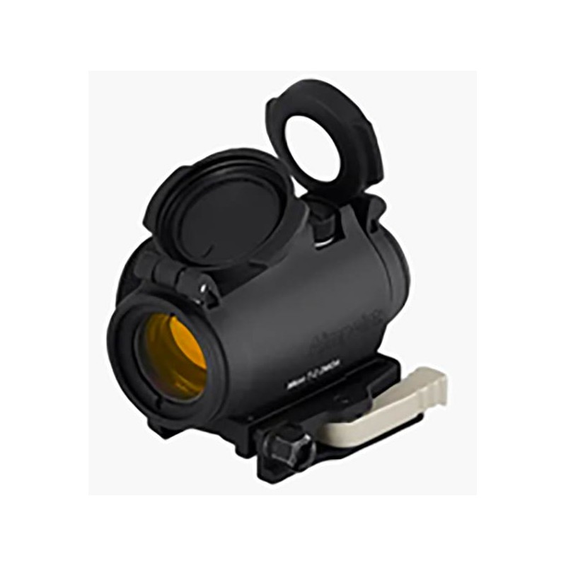 L’optique MICRO T-2 est équipée de caches rabattables. Le cache avant est opaque et celui de l’arrière transparent pour permettre à l’utilisateur de tirer en gardant les deux yeux ouverts tandis que les caches sont fermés dans les situations d’urgence. Le boîtier du viseur est en alliage d’aluminium, anodisation dure, pour une protection optimale des composants électroniques et optiques dans tous les types de conditions environnementales.