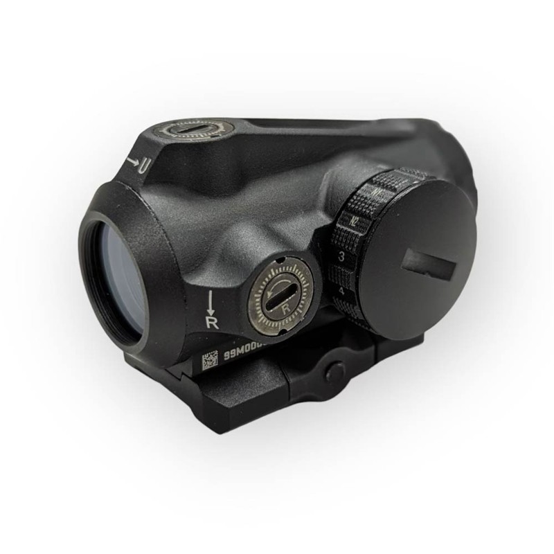 La grande nouveauté de la GEN II réside dans son sélecteur d'intensité rotatif placé sur le dessus de l'optique, permettant un réglage rapide et intuitif de la luminosité, même avec des gants. Le point rouge de 2 MOA offre un équilibre parfait entre précision à distance et rapidité de tir de près. Grâce à ses lentilles haute performance dotées de revêtements multicouches, la transmission lumineuse est optimisée, offrant une image claire et nette sur l'ensemble du champ de vision.